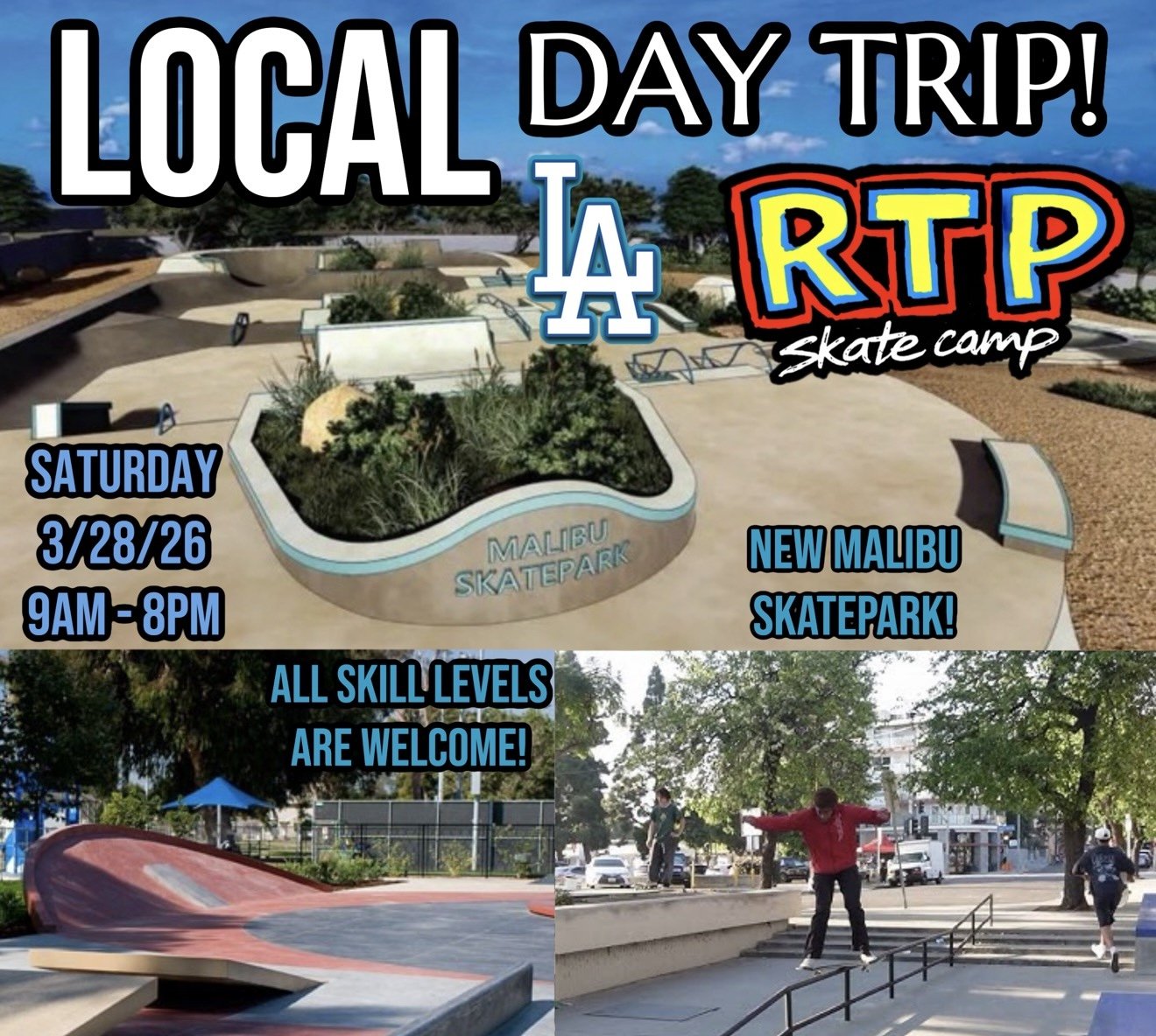 We’ll be commuting to local LA skateparks like Malibu, Santa Monica court house, Stoner skatepark, & more!